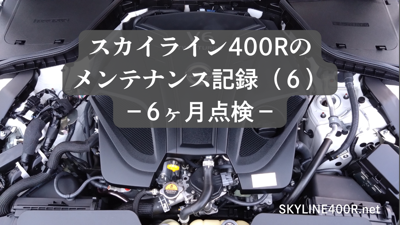 スカイライン400Rの車検から半年ほどが経過し、先日にディーラーの6ヶ月点検に入庫しました。ハートフル6ヶ月点検の内容および結果の記録です。